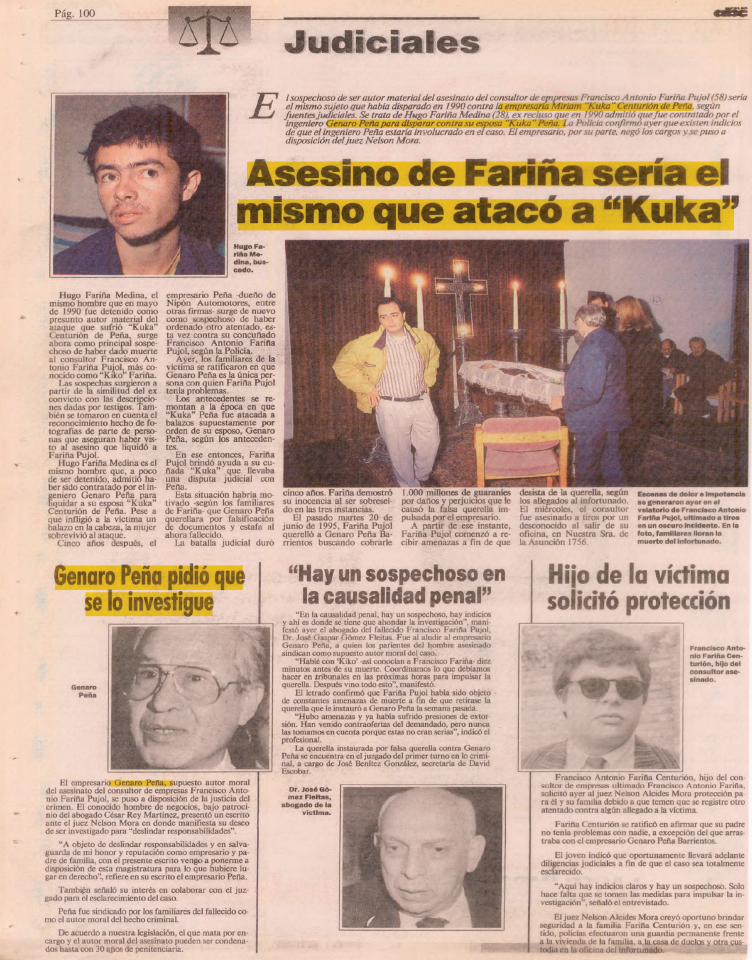 En 1995, Genaro Peña fue denunciado por el asesinato del contador Francisco Fariña Pujol, ocurrido en Asunción.